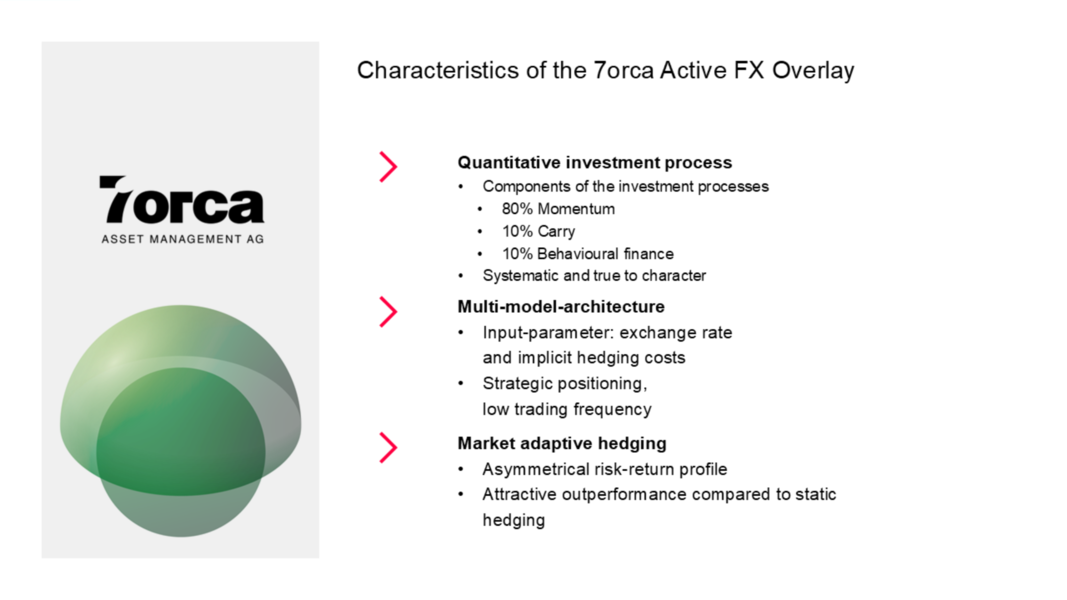 - The 7orca Active FX Overlay is aimed at mandates with flexible control logic and the goal of stabilising and improving risk-adjusted returns.
