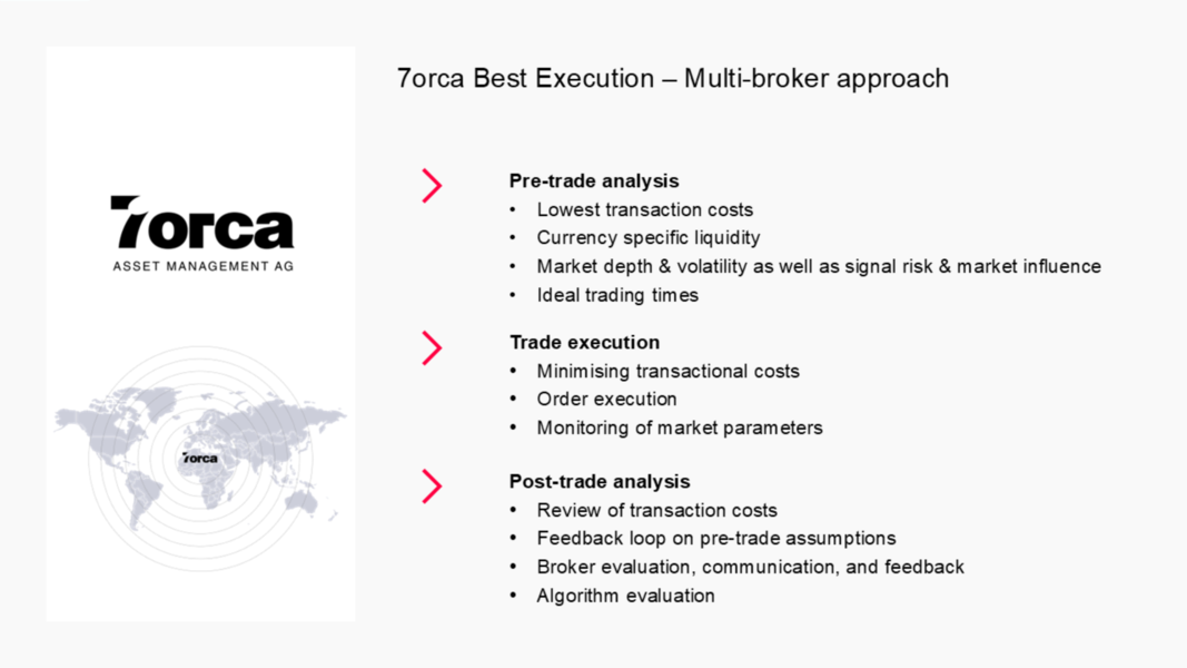 7orca manages these risks on an ongoing basis, provides advisory support to investors, and performs comprehensive broker due diligence annually.