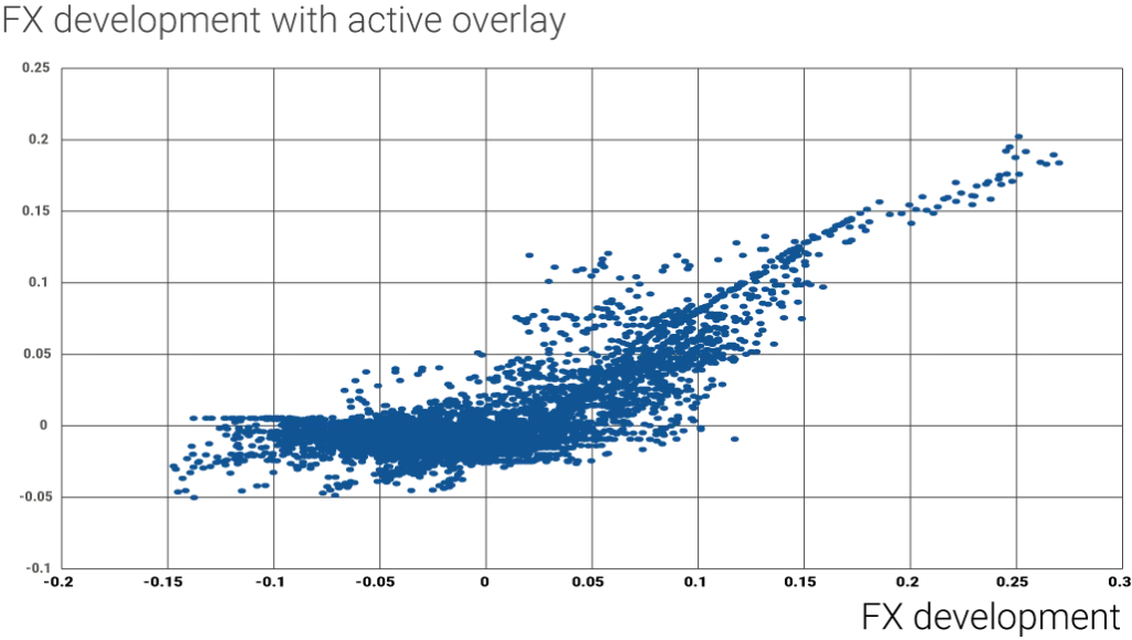 Figure 4 illustrates the relationship between foreign currency performance and foreign currency performance including active currency overlay. In principle, an active currency overlay should be adaptable so that the client‘s objectives and specifications are considered as precisely as possible in the strategy.