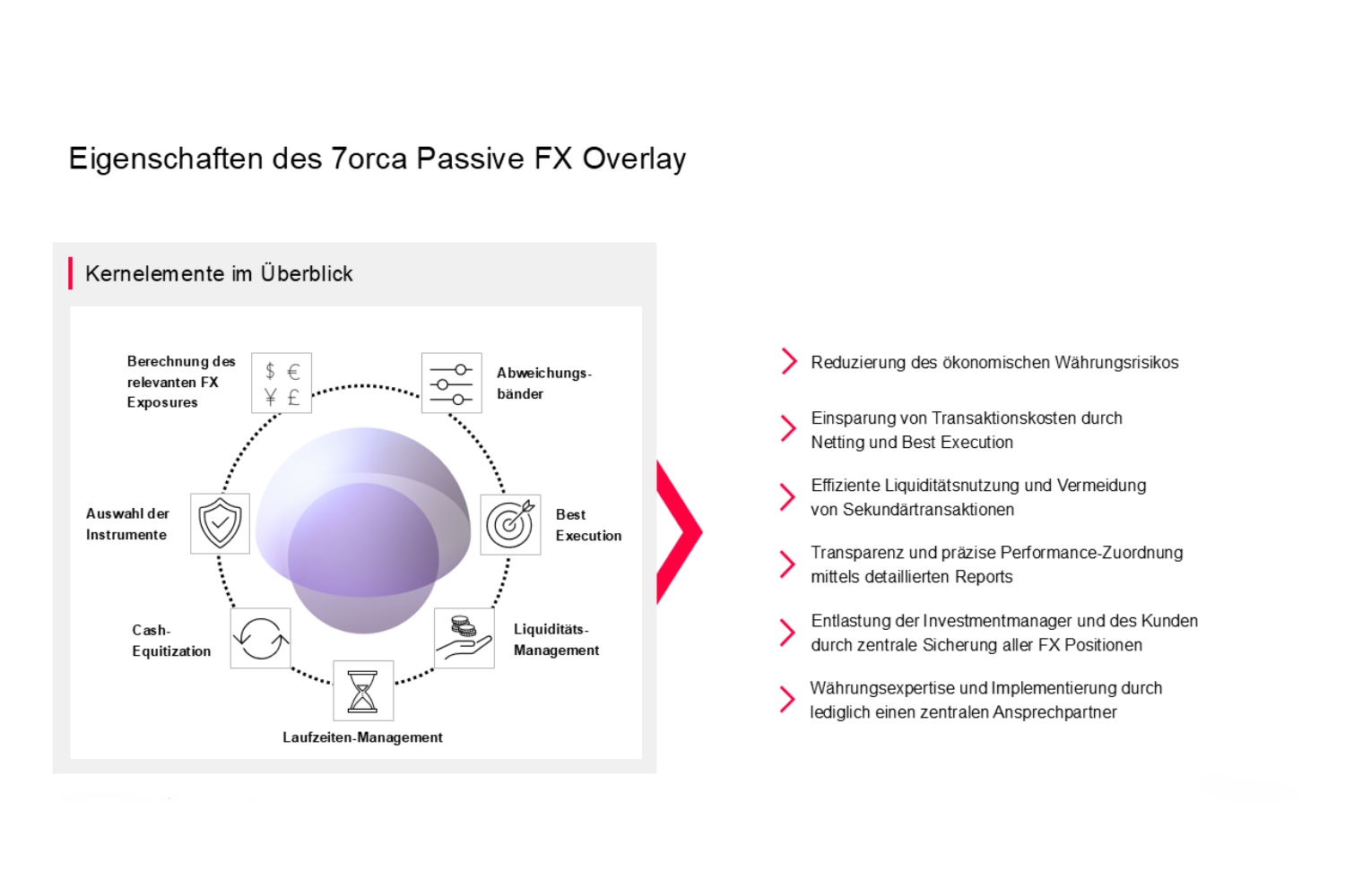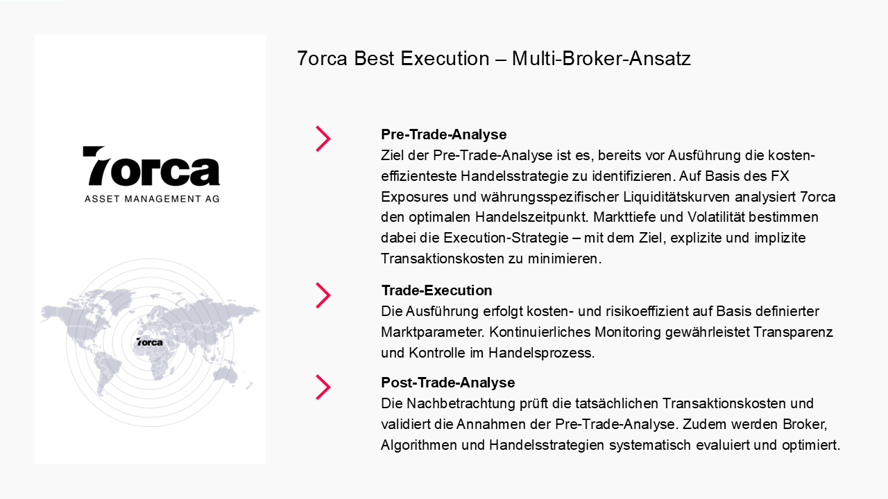 Sie verdeutlichen, auf welcher operativen Basis 7orca ein effizientes Währungsmanagement umsetzt – unabhängig vom Asset Management und exakt auf die jeweilige Portfoliostruktur abgestimmt.
